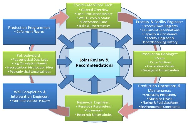 Integrated WRFM reviews are important in fixing ‘the basics’ and realizing the potentials of any WRFM process in an asset. The relevant components of this value-loop element are daily production-review (DPR), monthly reviews, quarterly PSO and annual reviews. All these reviews are multi-disciplinary, enabling full integration. In general, these reviews are essentially a feedback mechanism, where trends are identified and use to predict the future.